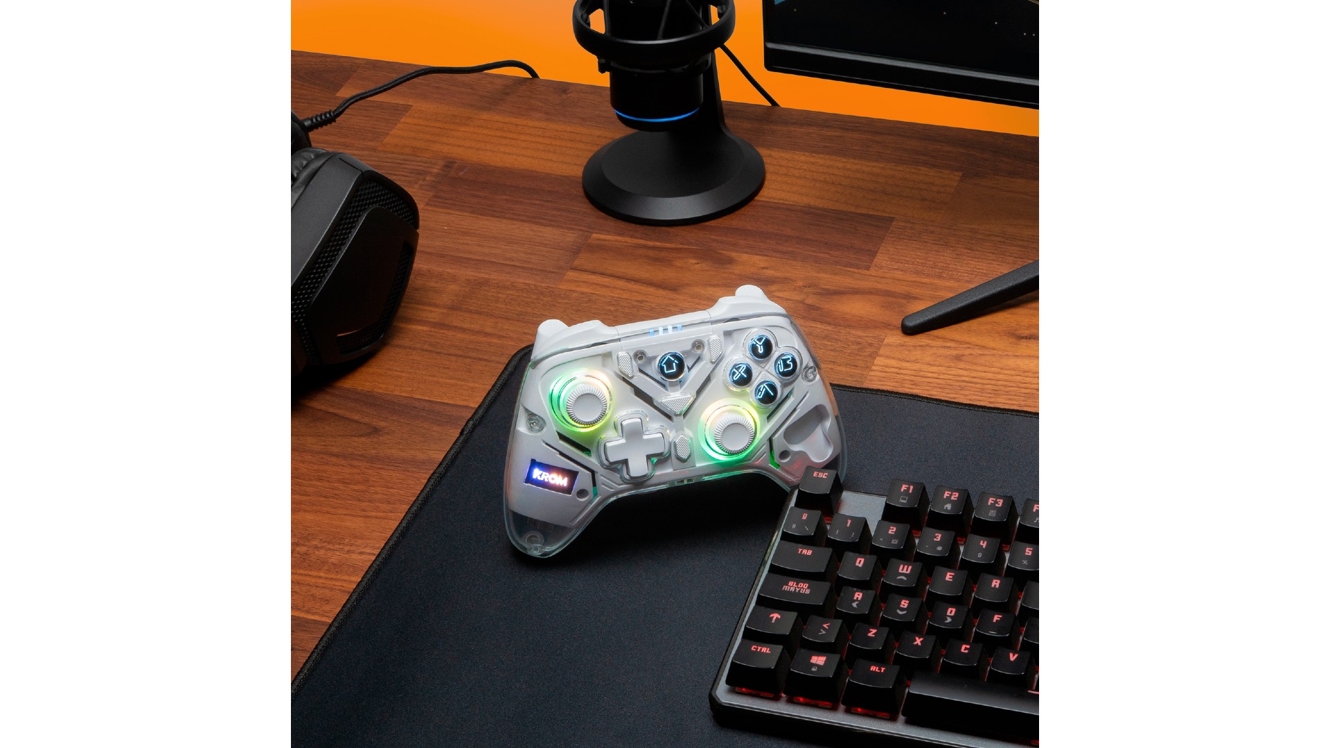 Empezaremos hablando sobre el Krom Krystal, el cual no es solo un mando con un estilo bonito. Su diseño totalmente transparente y ergonómico, busca transportarte a la edad dorada de los videojuegos mientras disfrutas de la tecnología más actual.