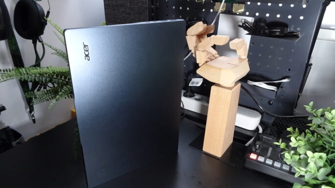 Acer opta por una combinación de aluminio de alta calidad en la tapa y el reposamuñecas, lo que confiere una sensación premium y robusta al conjunto. La base podría estar fabricada en una aleación de magnesio o un plástico duradero de alta calidad para optimizar el peso sin comprometer la resistencia. Los acabados son limpios y mate, lo que ayuda a resistir las huellas dactilares y le da un aspecto sofisticado.