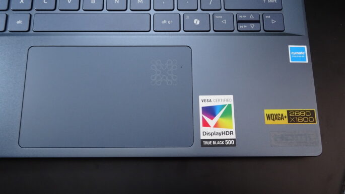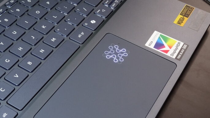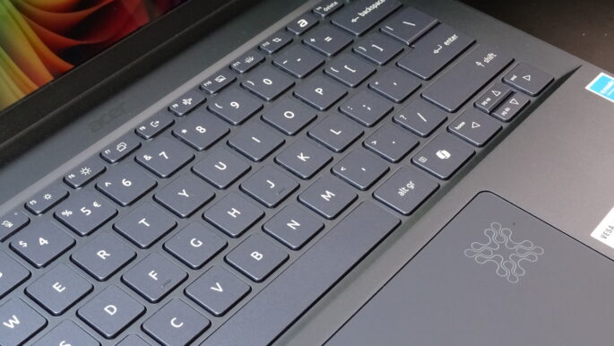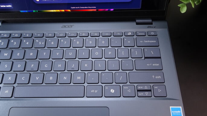 El teclado es de tipo chiclet, con teclas de buen tamaño y espaciado adecuado. El recorrido de las teclas es probablemente un poco corto, como es común en los ultrabooks, pero ofrece un feedback táctil satisfactorio que permite una escritura rápida y precisa. Cuenta con retroiluminación ajustable, esencial para trabajar en entornos con poca luz. La distribución es estándar, lo que facilita la adaptación. En general, es un teclado cómodo para largas sesiones de escritura.