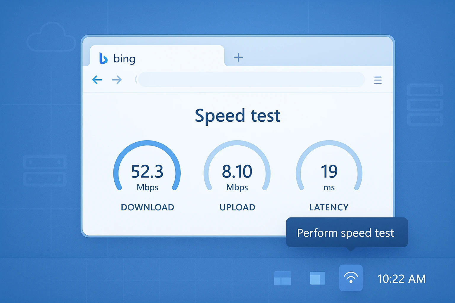 - El «truco»: No es un medidor nativo integrado en el código de Windows. Al activarlo, el sistema abre una pestaña en el navegador con una búsqueda en Bing para «prueba de velocidad de Internet».