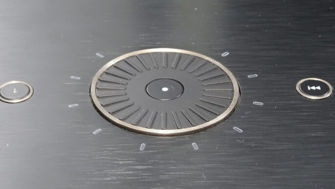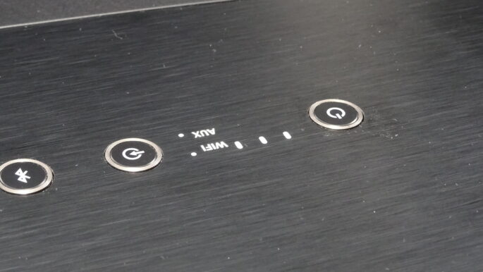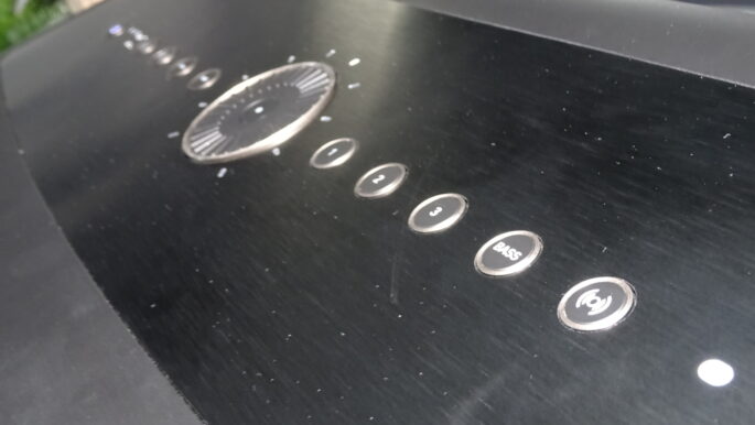 La ergonomía es un punto crítico en estos dispositivos. Teufel ha implementado un panel de controles táctiles capacitivos en la parte superior que se iluminan mediante un sensor de proximidad. Es un detalle de diseño sutil pero extremadamente satisfactorio: el altavoz parece «cobrar vida» cuando acercas la mano. Estos controles permiten gestionar el volumen, la reproducción y el acceso a los tres botones de favoritos, donde puedes asignar emisoras de radio o listas de reproducción de Spotify sin necesidad de tocar el teléfono.