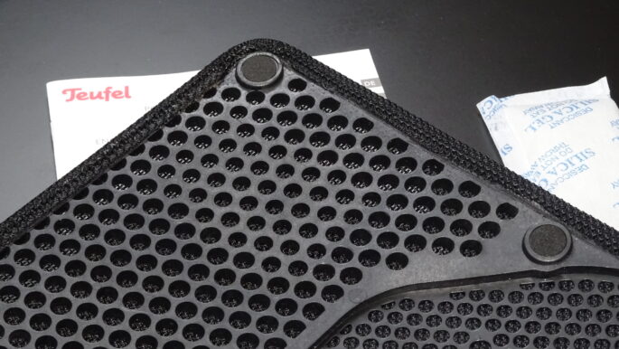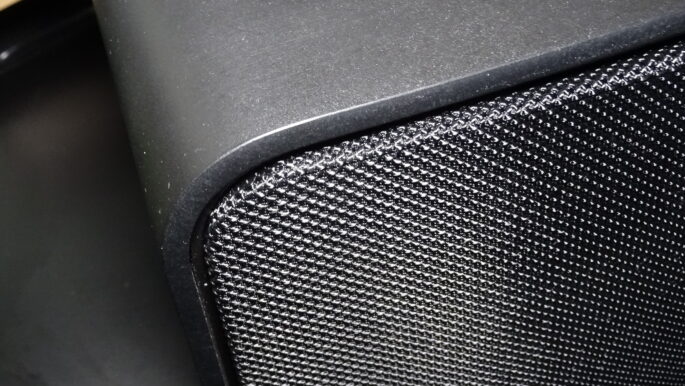Al sacar el MOTIV XL de la caja, lo primero que notas es que no es ligero. Y en el mundo del audio, el peso suele ser sinónimo de buenos materiales y transformadores potentes. Teufel ha optado por una estética que yo definiría como funcionalismo alemán contemporáneo. No hay bordes excesivamente redondeados ni telas de colores pastel. Tenemos una estructura sólida, con acabados en madera de alta calidad (especialmente la versión en blanco con madera clara es una delicia visual) y una rejilla frontal que protege lo que de verdad importa. Aunque la versión que analizamos nosotros no fue esa…y hemos de decir que el negro también le sienta espectacular.